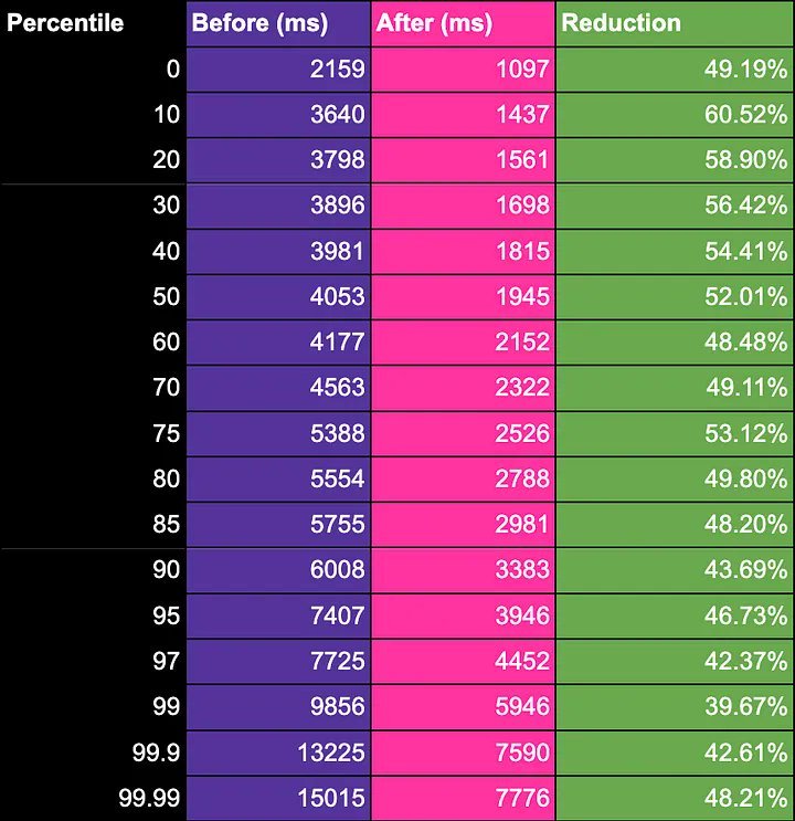 - Average latencies reduced by 51%, from 4.57 seconds to 2.23 seconds.️