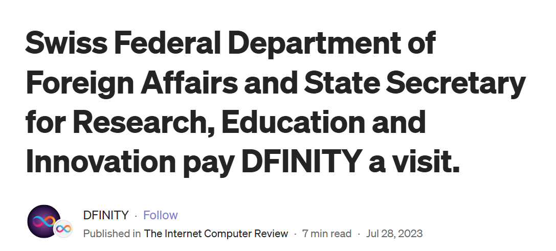 The mass adoption of ICP is gaining momentum in Switzerland. Notably, we have observed its adoption by private banks, institutions, and municipalities. Furthermore, the team is actively engaging with government bodies to discuss a range of Web3 topics, including decentralization, blockchain technology, digital identity, and digital governance.