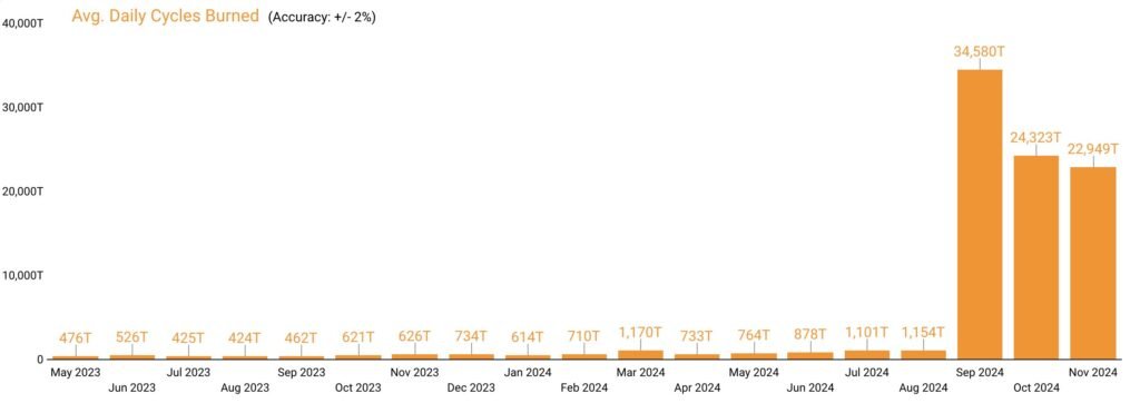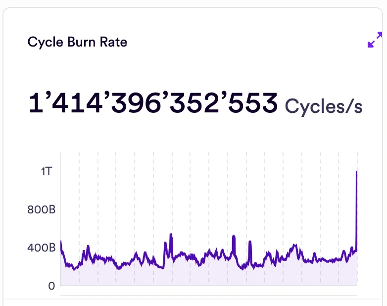 Last week, the cycle burn rate peaked at 1.4 trillion cycles per second, marking the second-highest measurement since the beginning of October.