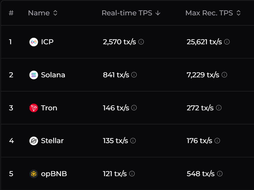 These figures highlight ICP’s leading position in transaction processing speed within the cryptocurrency space.